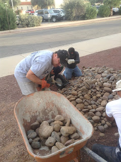 The Knights of Columbus enhance an Eagle Scout Project by Nick Cancola who added a concrete sidewalk to create a safe path away from the busy street for parents and children away from a busy street. Council 11855 (& State) Chaplain Fr Crino and Seminarian Jesus help out the early morning work crew.